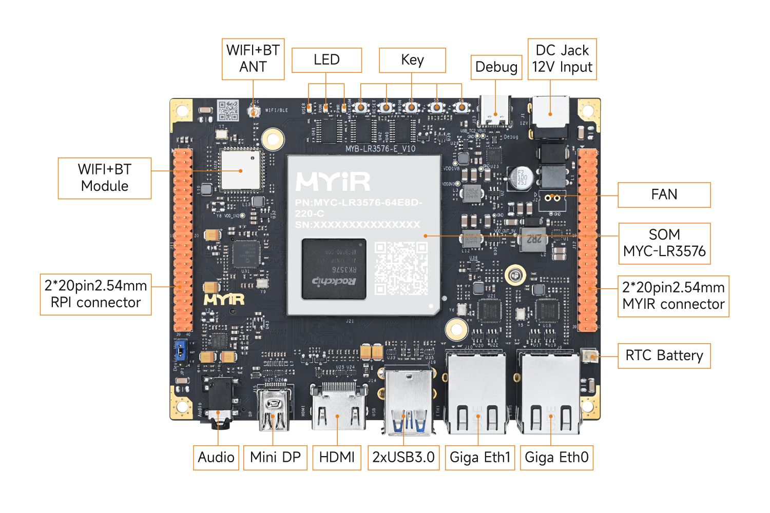 MYD-LR3576-64E8D-220-C | RK3576 | 8GB LPDDR4X | 64GB eMMC | 0℃~+70℃ 商业级 |