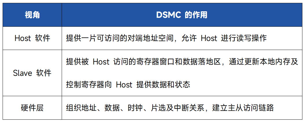 DSMC既不是普通内存,也不是上层通信协议,而是一条面向对端地址空间的硬件访问通道: