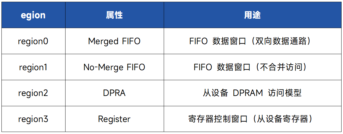 Register访问:当region属性为Register时,Host访问的是Slave CSR寄存器窗口,用于主从控制信息交互