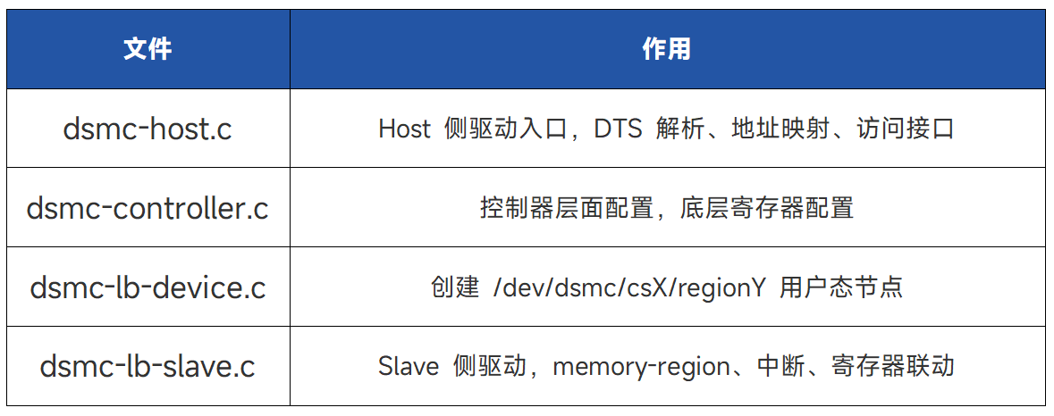 /dev/dsmc/cs0/region0 # FIFO 数据窗口 /dev/dsmc/cs0/region3 # Register 控制窗口