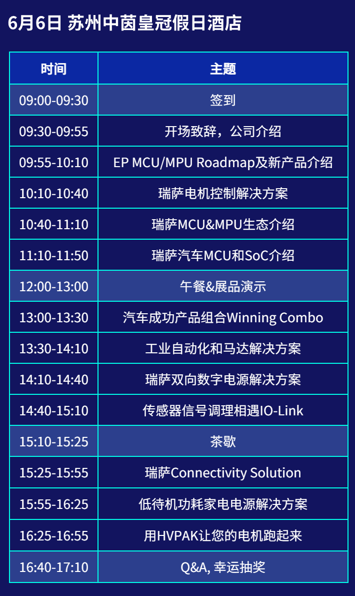 瑞萨大会议程安排