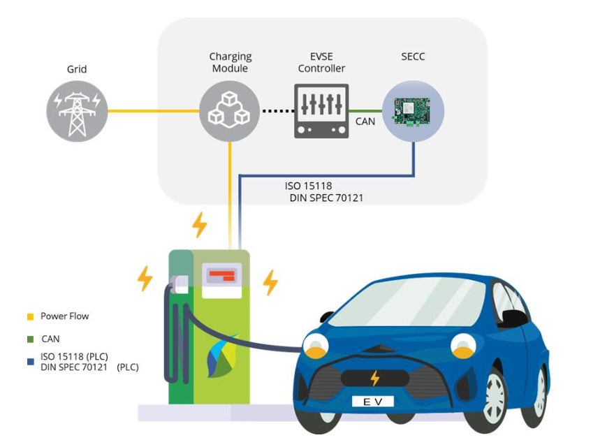 随着全球能源结构向清洁化、智能化加速转型,电动汽车与电网的深度融合已成为关键一环。车辆到电网技术不仅让电动汽车成为移动的储能单元,更赋予了它们参与电网调峰、消纳可再生能源的使命。在这一颠覆性变革中,充电桩与车辆之间的“智慧大脑”—SECC(Supply Equipment Communication Controller,供电设备通信控制器),扮演着至关重要的角色。一、SECC:智能充电的“协议转