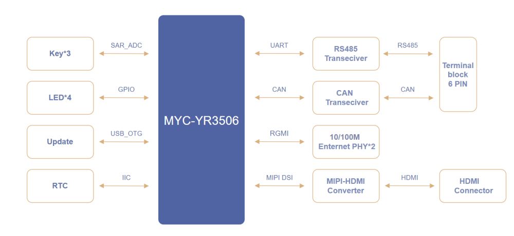 百微秒级实时响应,突破Linux性能瓶颈:通过深度内核优化,MYC-YR3506打破传统Linux系统的实时性局限,满载运行状态下仍可实现百微秒级稳定响应。即便在多设备并发控制、高频数据采集等高压力场景中,也能维持优异性能,满足工业控制对时序精度的严苛要求。
