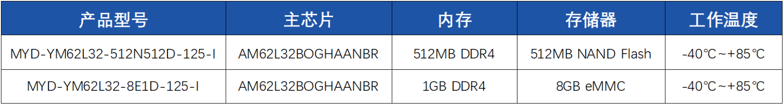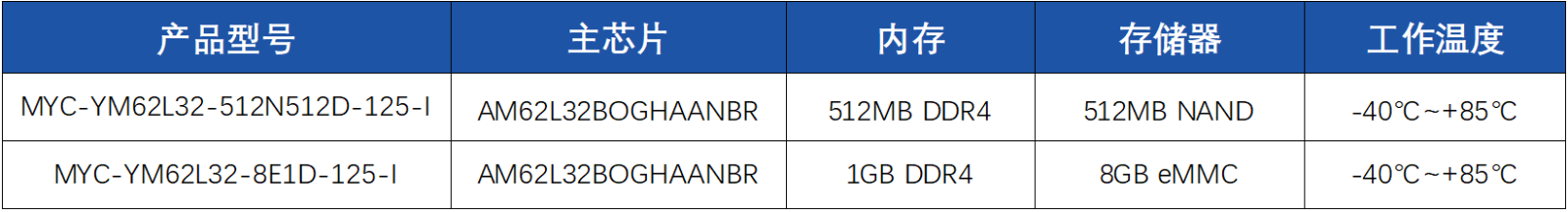 核心板型号配置:
